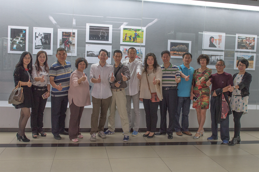 影友们在作品前面合影留念。